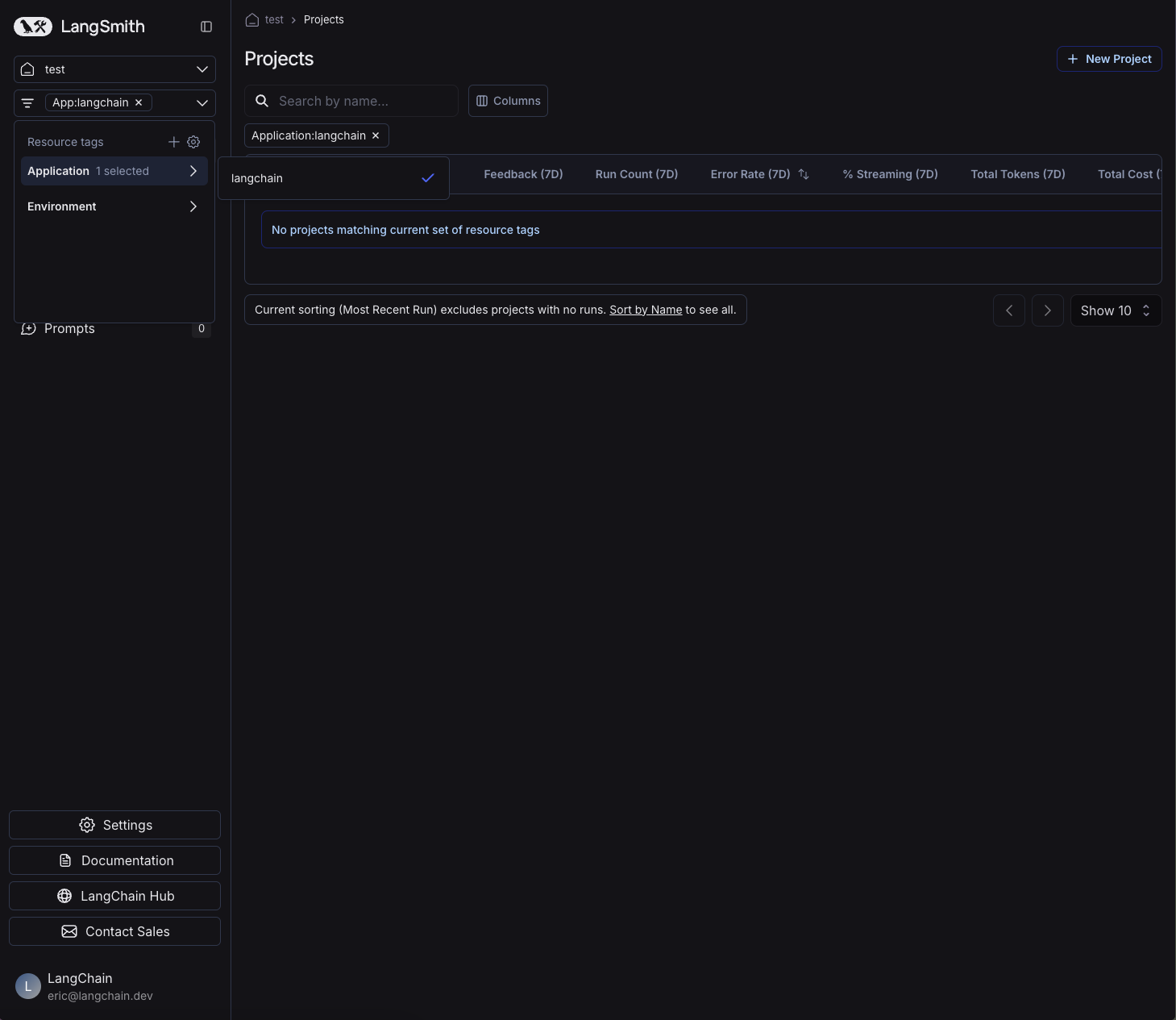 Not to be confused with commit tags: Resource tags are key-value pairs used to organize and filter workspace resources (projects, datasets, prompts, etc.). Commit tags are labels that reference specific versions in a prompt’s commit history. While both types of tags can use similar terminology (like prod or staging), resource tags help you organize resources across your workspace, while commit tags control which version of a prompt is used in your code.